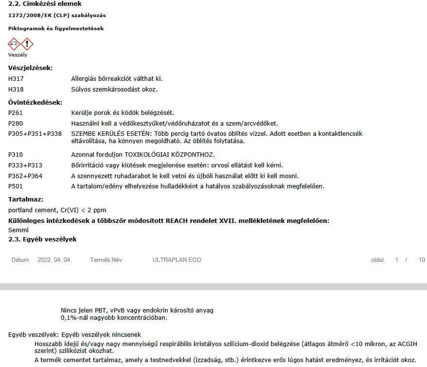 - Keverési arány: 24-25 rész víz 100 tömegrész Ultraplan Eco-hoz.