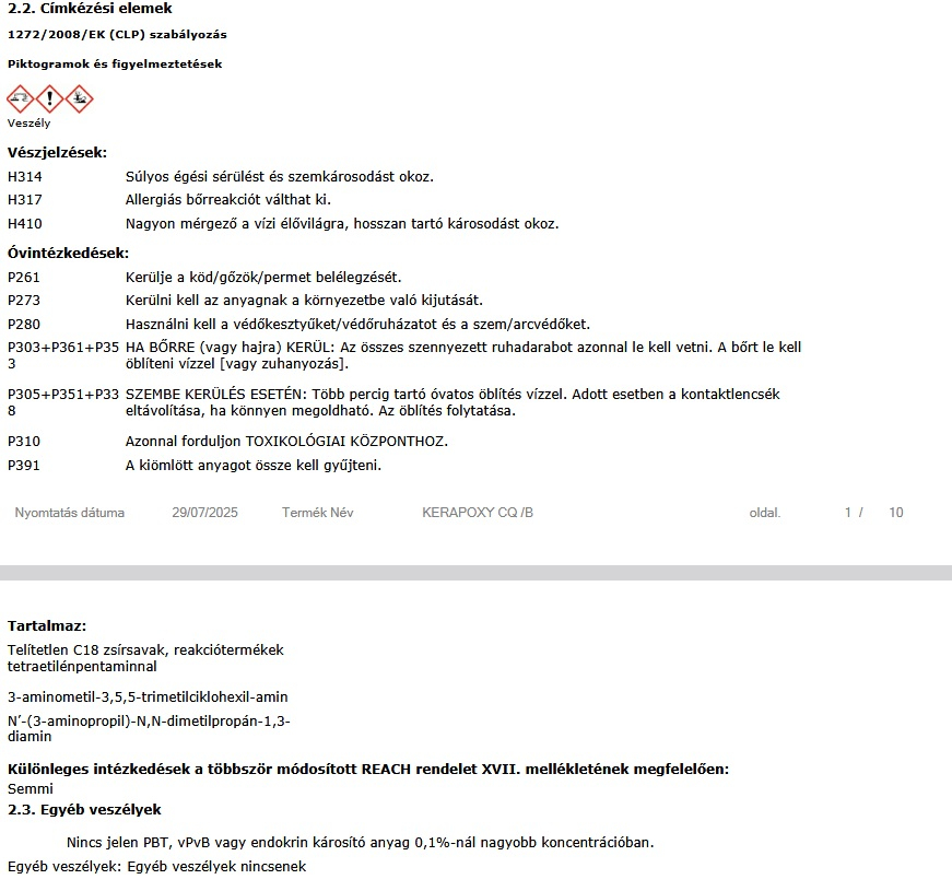 A Kerapoxy CQ fugázó, egy kétkomponensű, saválló epoxi fugázóanyag, amelyet rendkívül könnyű felhordani és letisztítani, legalább 2 mm széles fugahézagokhoz. Alkalmazási területek: Kerámia burkolólap, kőlap és üvegmozaik bel- és kültéri saválló és nem nedvszívó fugázása. Különösen alkalmas olyan nagy felületeken, mint: lapburkolattal burkolt fugázása ipari környezetekben, ahol nagy veszélye van a sav károsításának (ipari konyhákban, vágóhidakon, tejüzemekben, stb.) és hagyományos vizű vagy termálvizes medencék esetében.