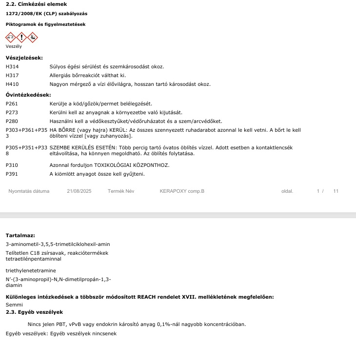 - Használatban vehető: 4 nap. 4 nap után a felületek vegyszerállók.